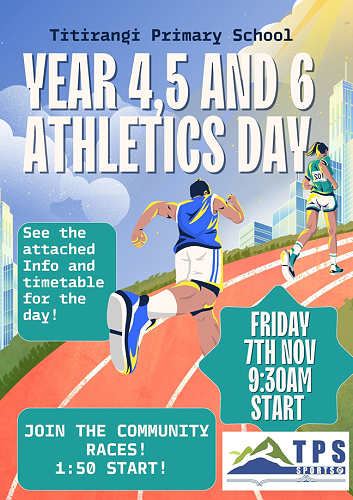 Year 4 - 6 Athletics Fun Day - Friday 7th of November - Starting at 9:30am